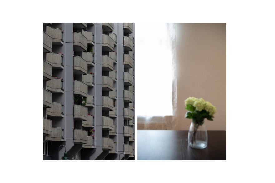 This work was born from my experience as expat and tells about the first encounter with Berlin and its raw beauty, on a gray Autumn of some years ago. The huge spaces, the Plattenbauten and the Sovietic architecture of the place where I lived magnified the feeling of loneliness I felt in those days. The loss of most of my points of reference made me feel bewildered and disoriented. My fear acted like a filter on my eyes. Only when I let the fear go, I began to see the beauty around me.